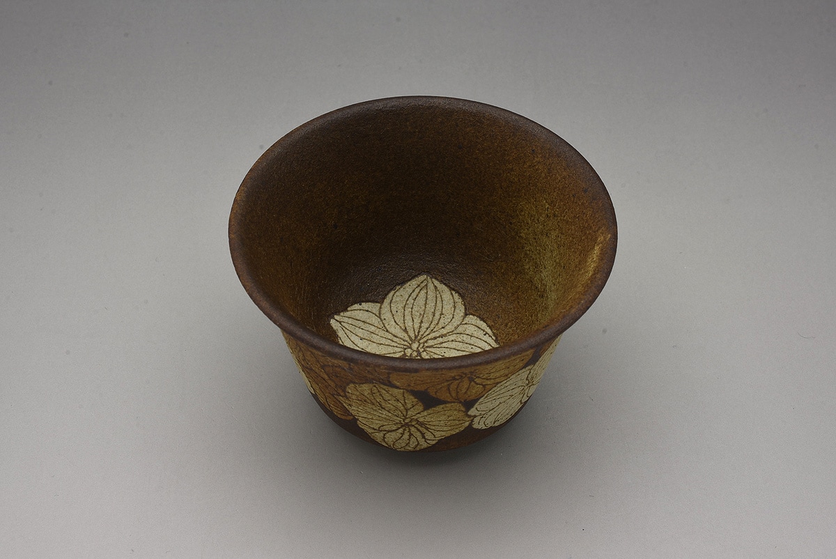 掻落花紋湯呑