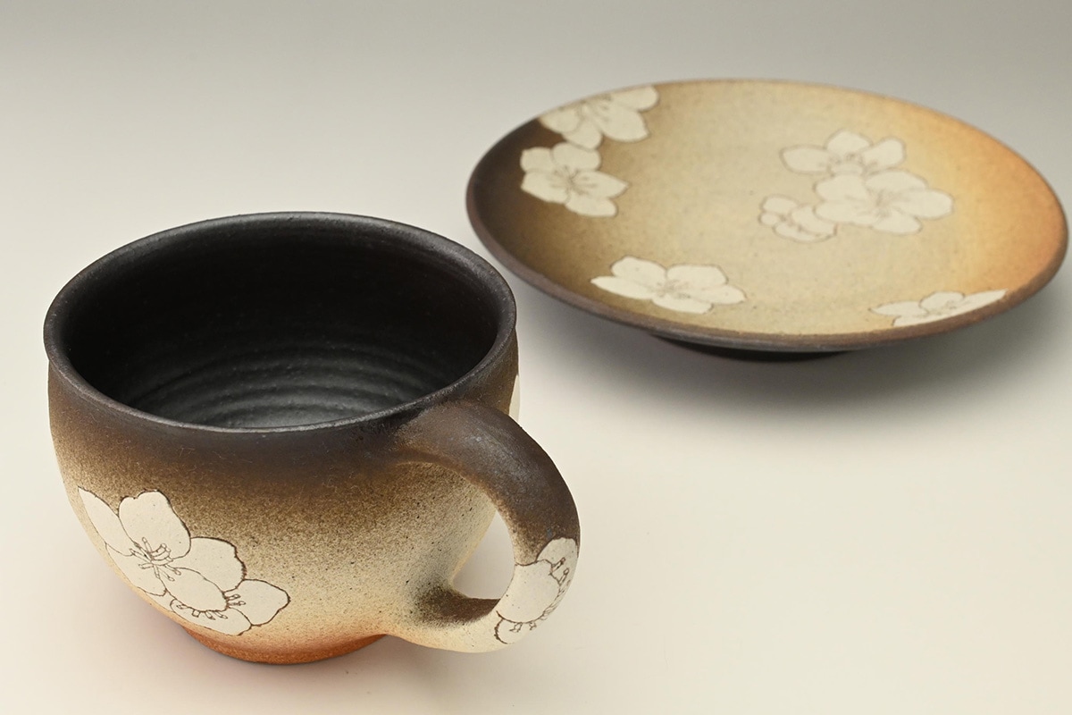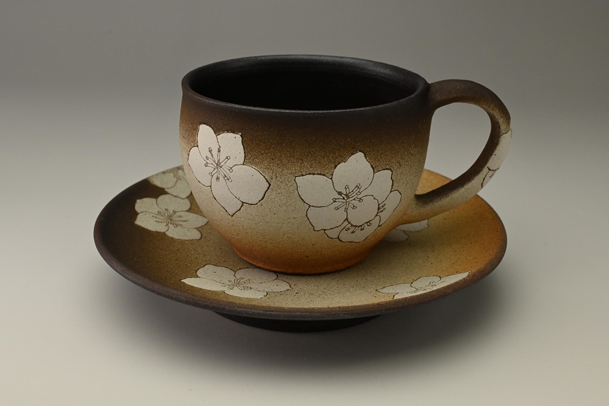 掻落花紋珈琲碗桔..