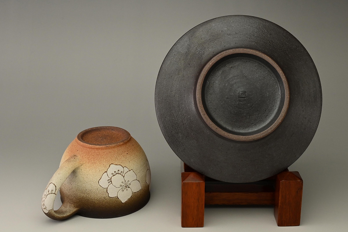 掻落花紋湯呑