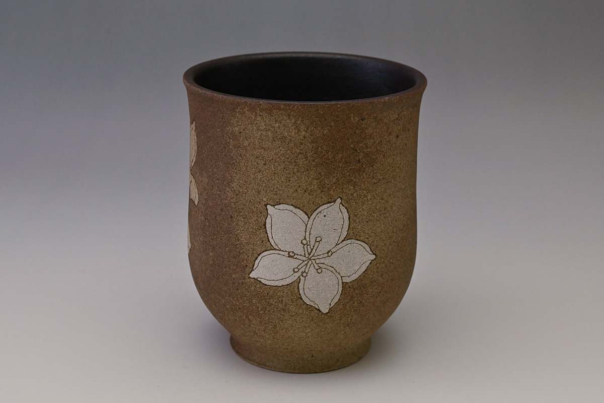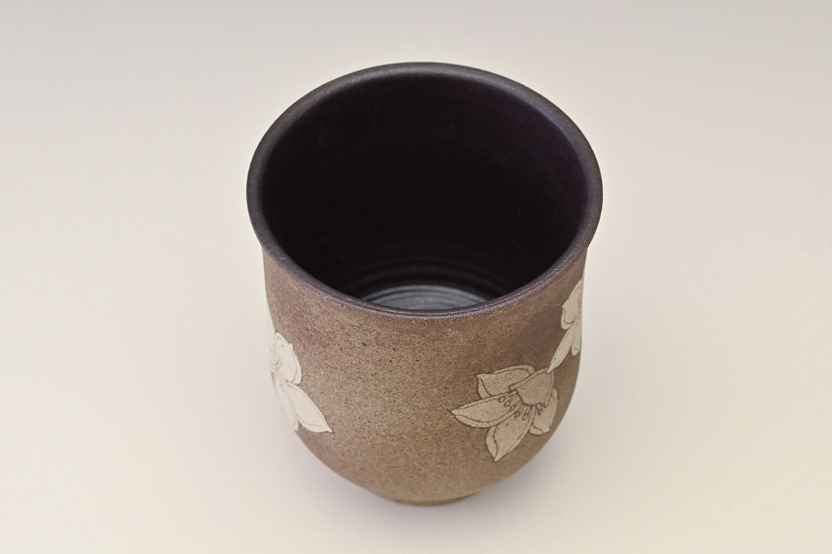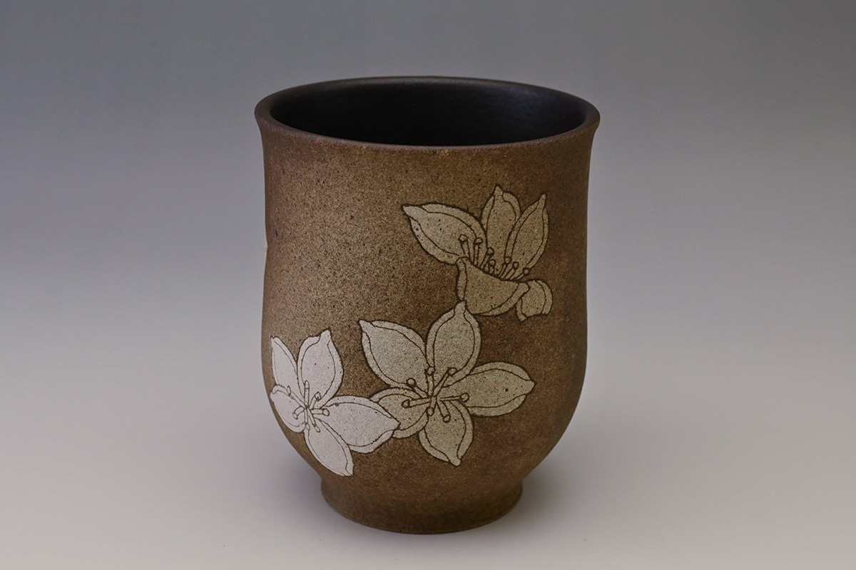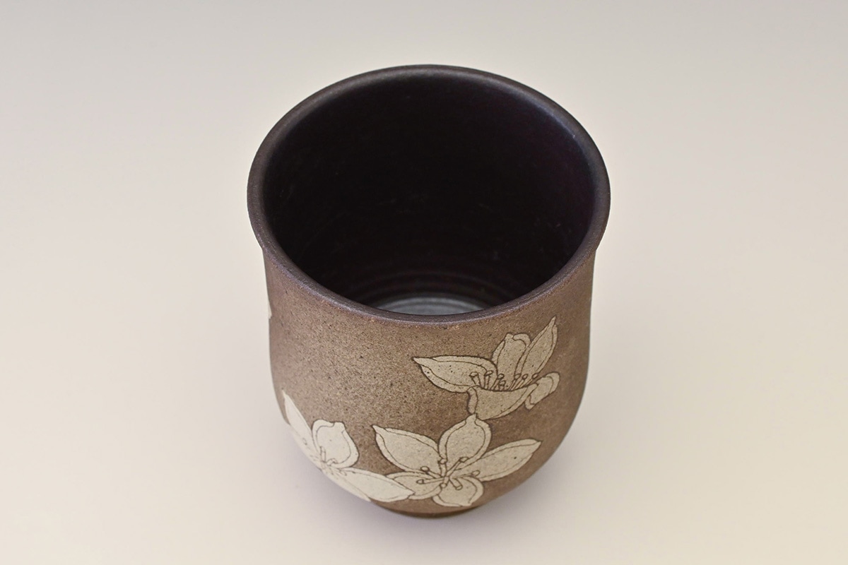 掻落花紋湯呑