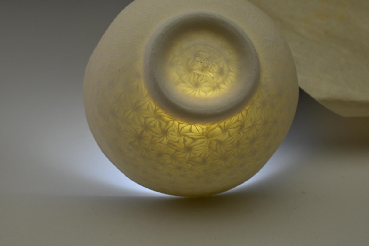 麻の葉と言う伝統的な模様を練上げに生かして魅力的な作品を生み出している。