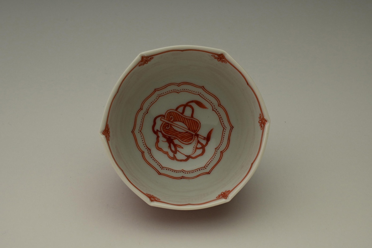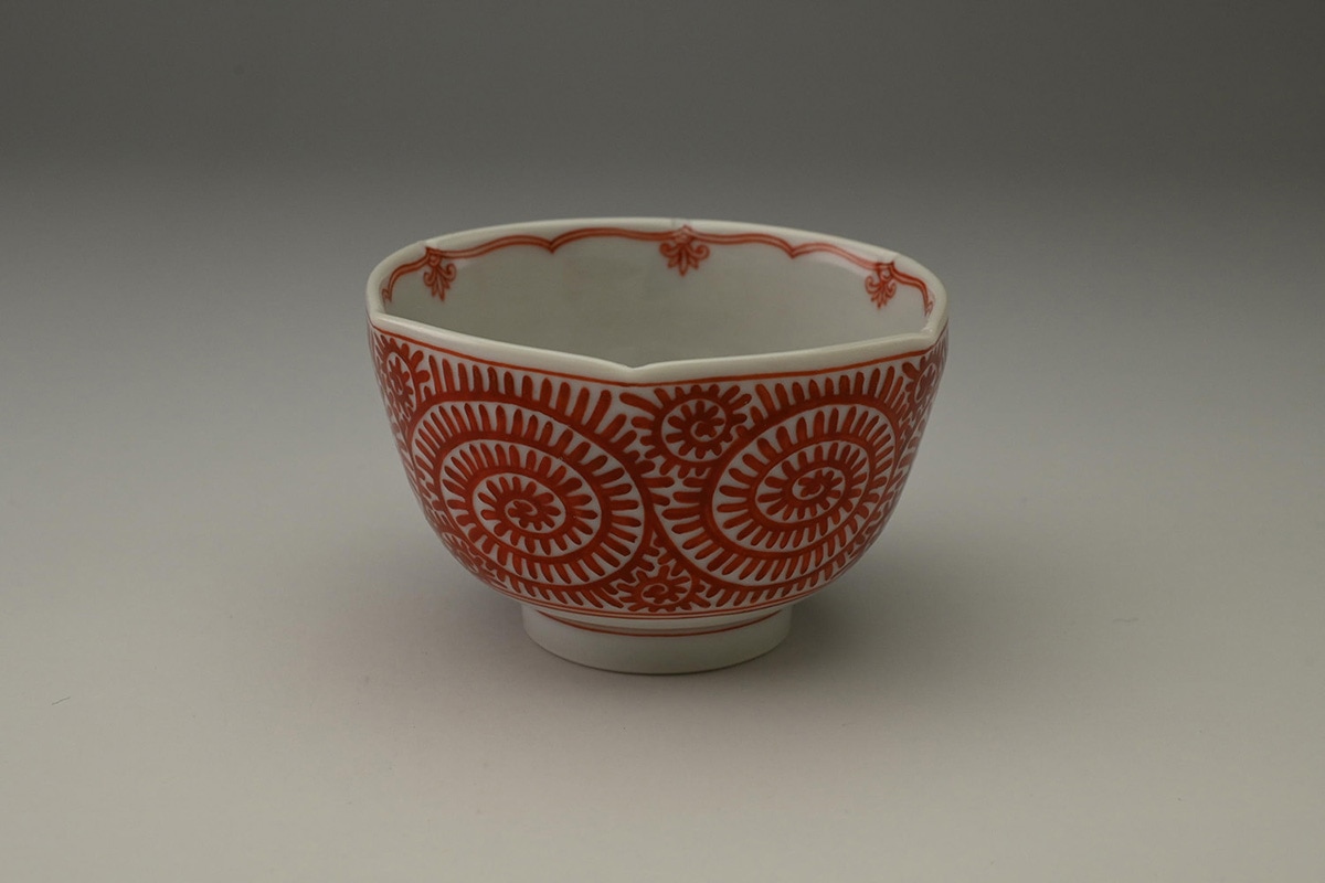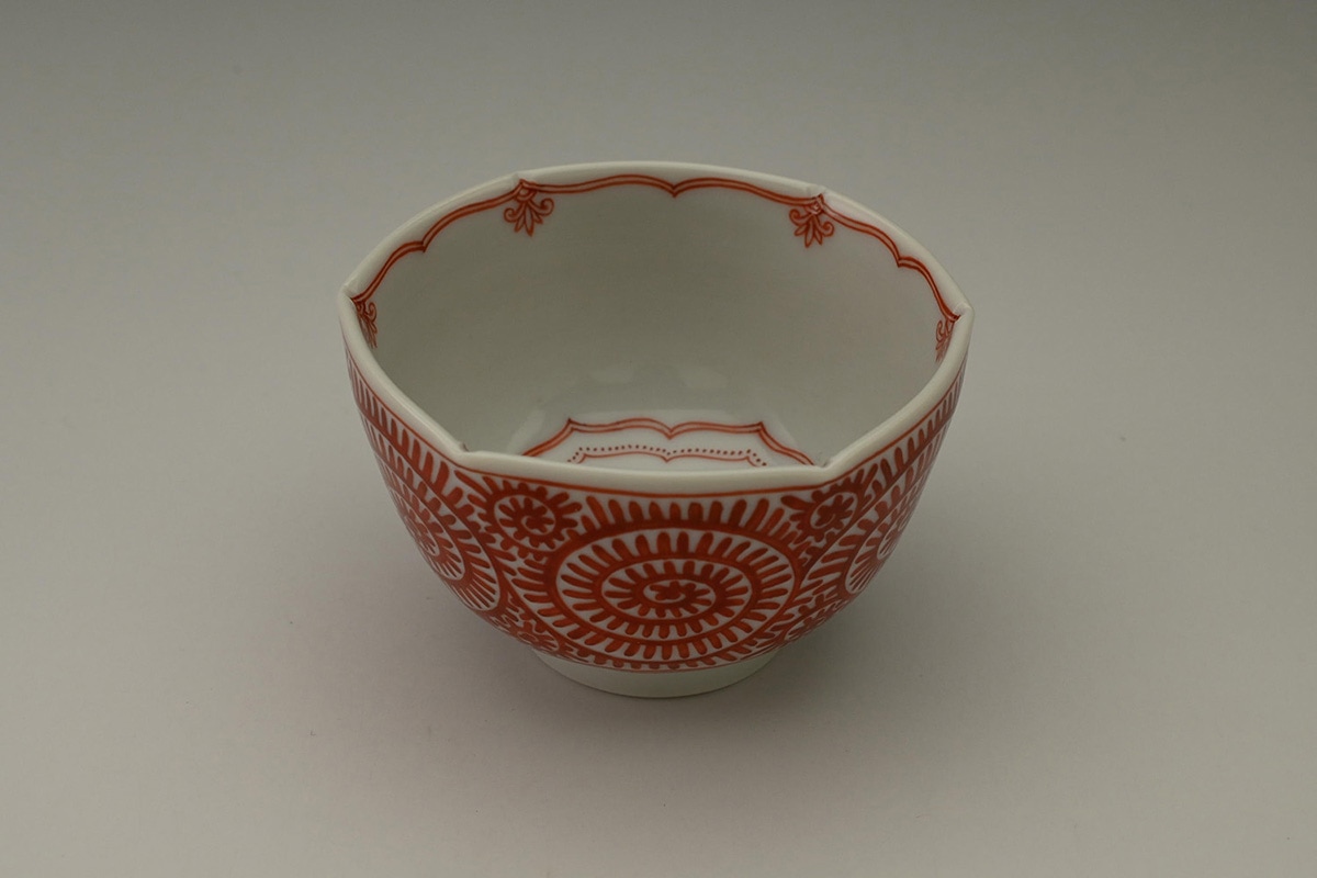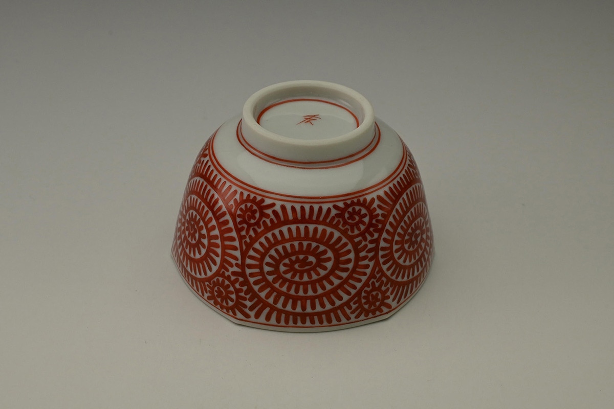 赤絵小紋面取猪口
