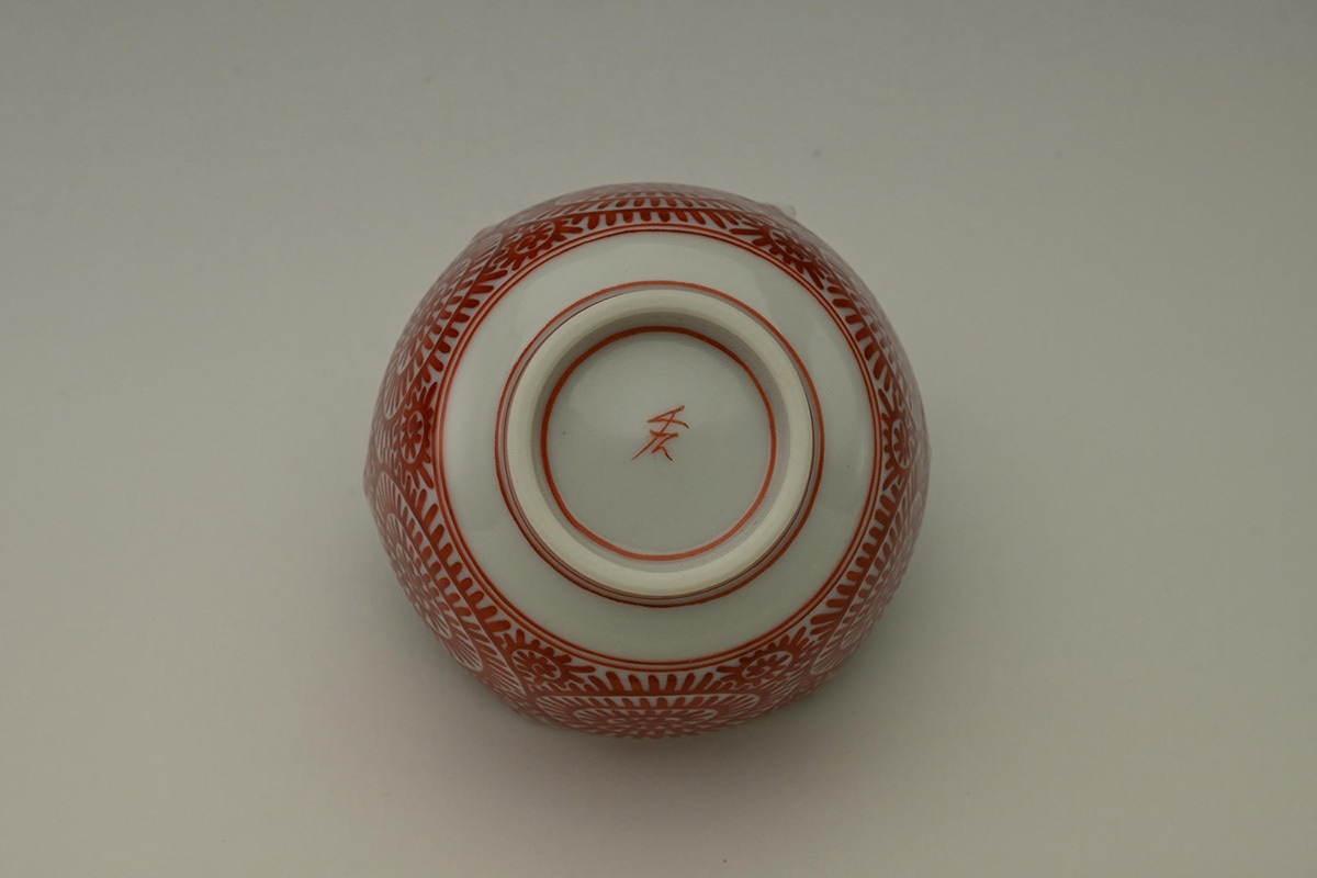 赤絵追掛小紋丸底湯呑