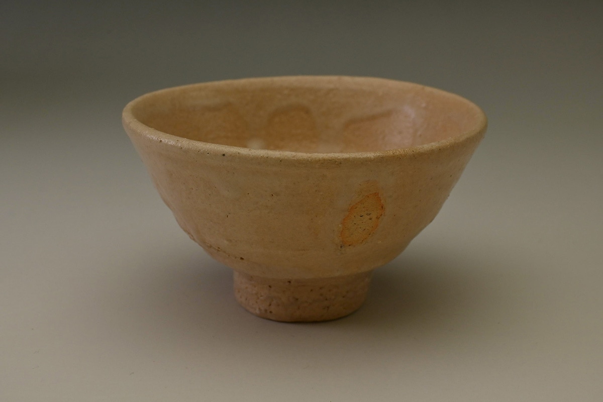 粉引割高台盃
