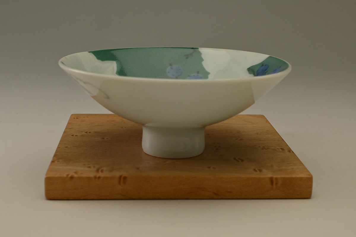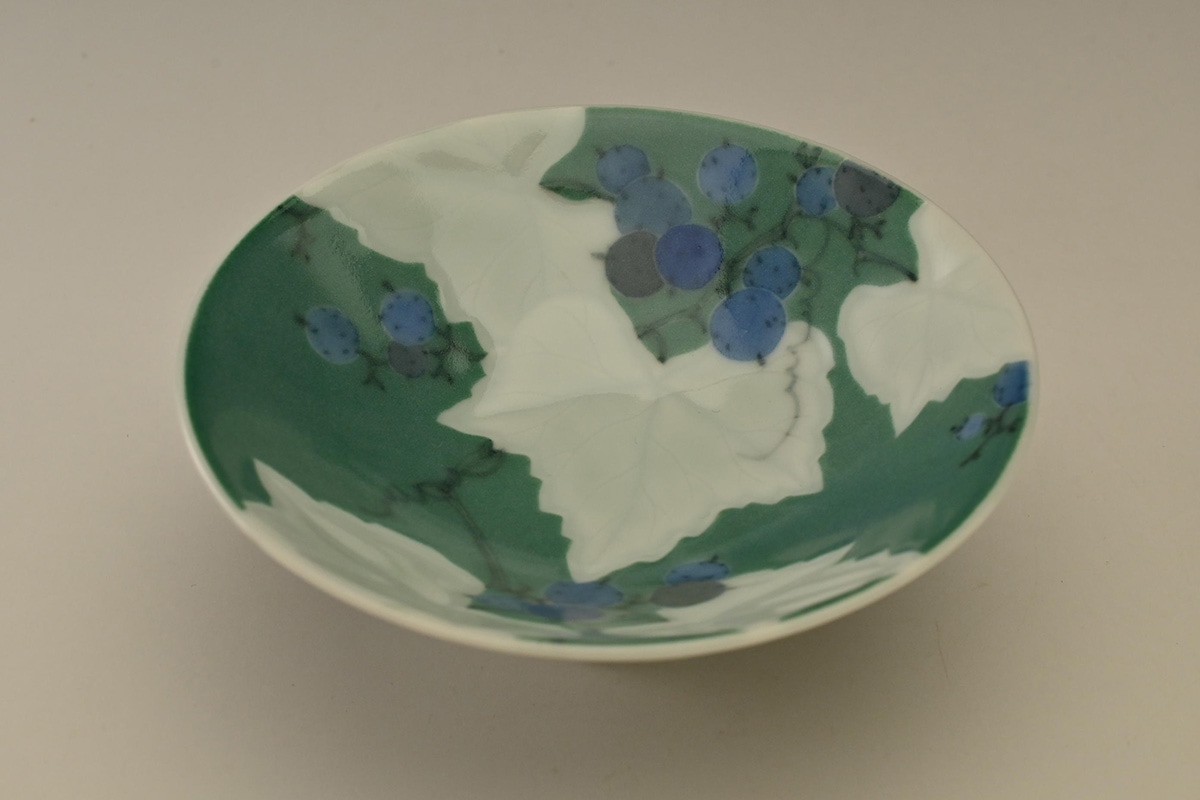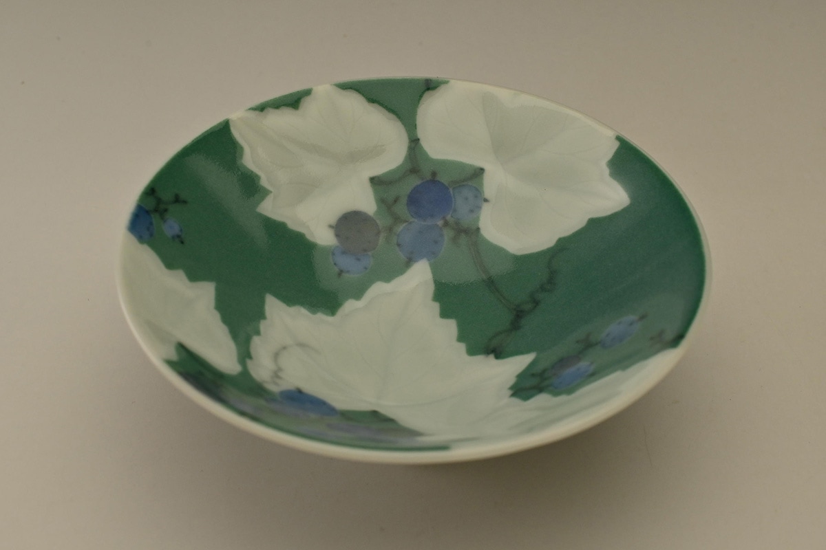 磁器に染付の作品が中心であるが、近年は彫にも挑戦している注目の女性作家です。
