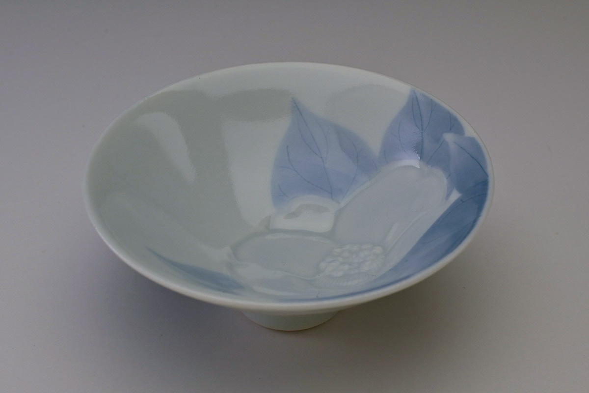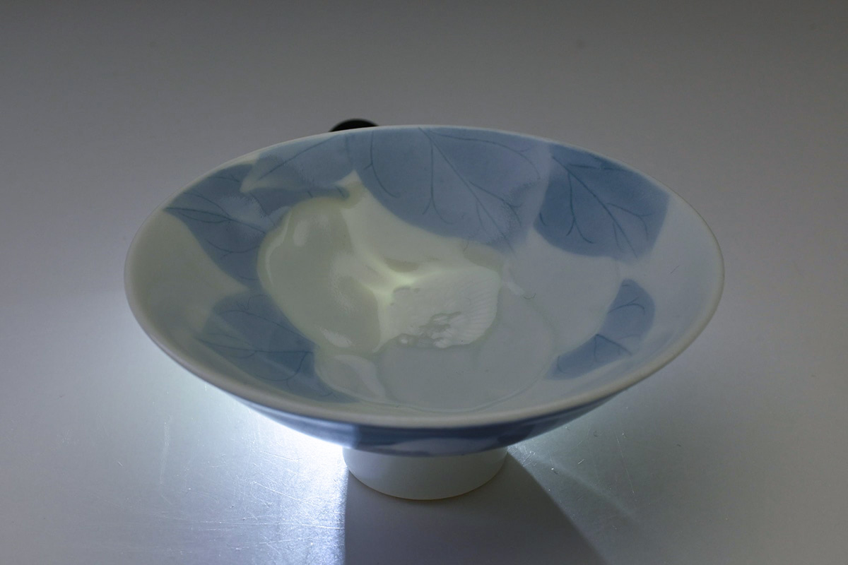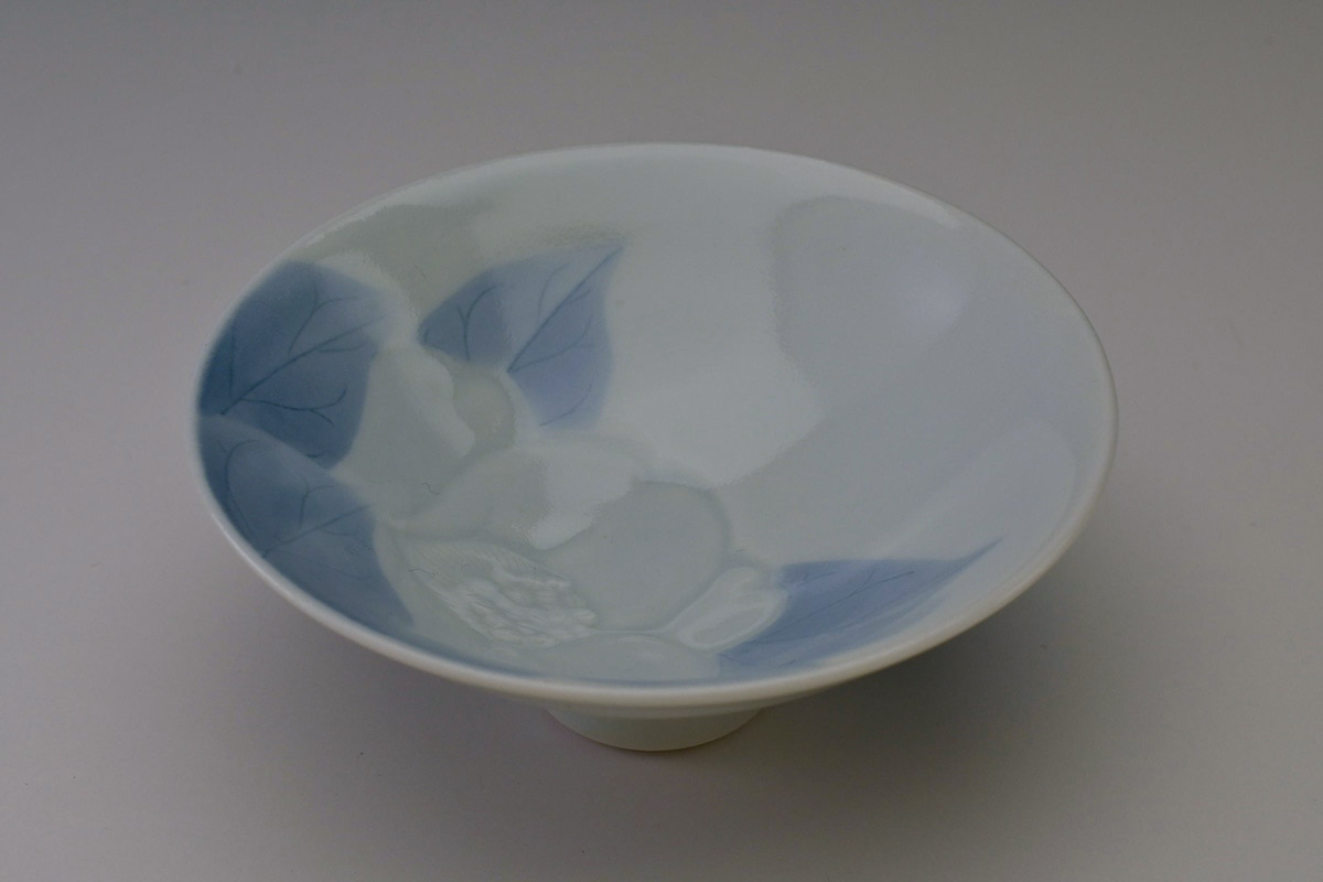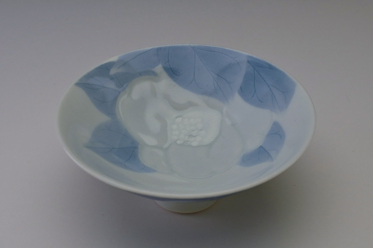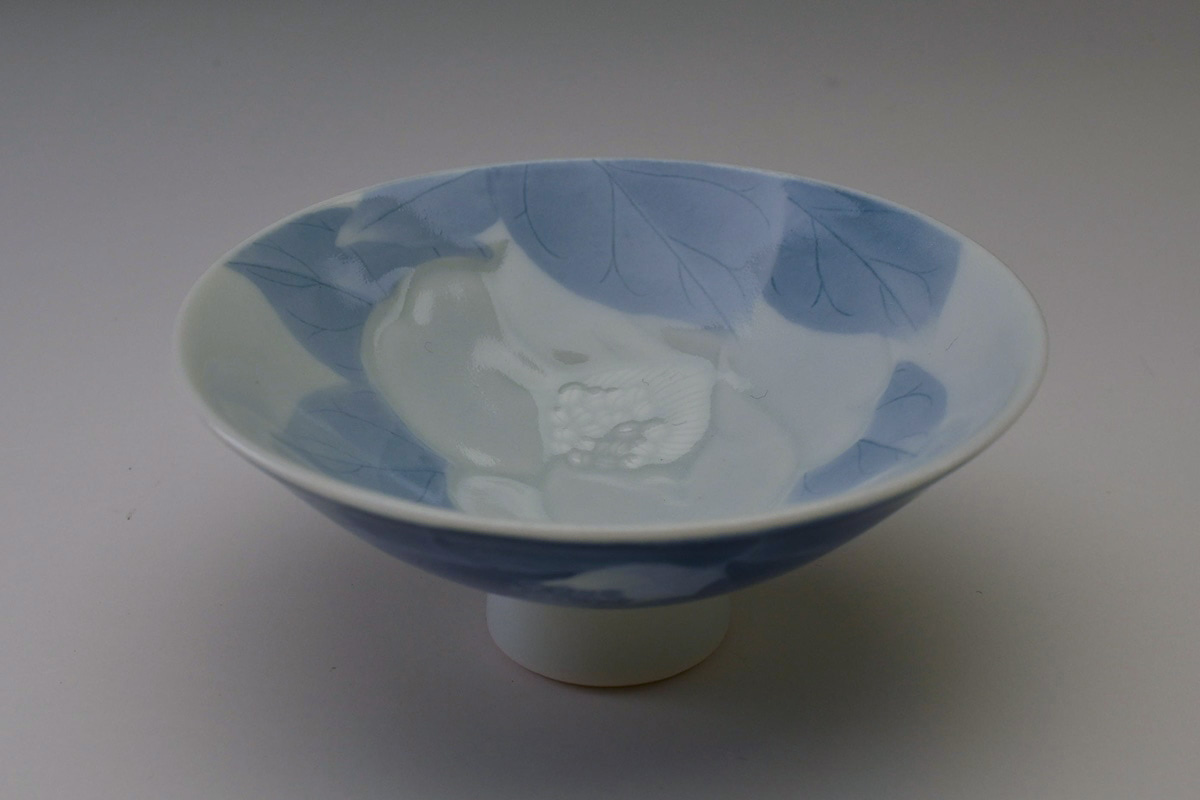 磁器に染付の作品が中心であるが、近年は彫にも挑戦している注目の女性作家です。