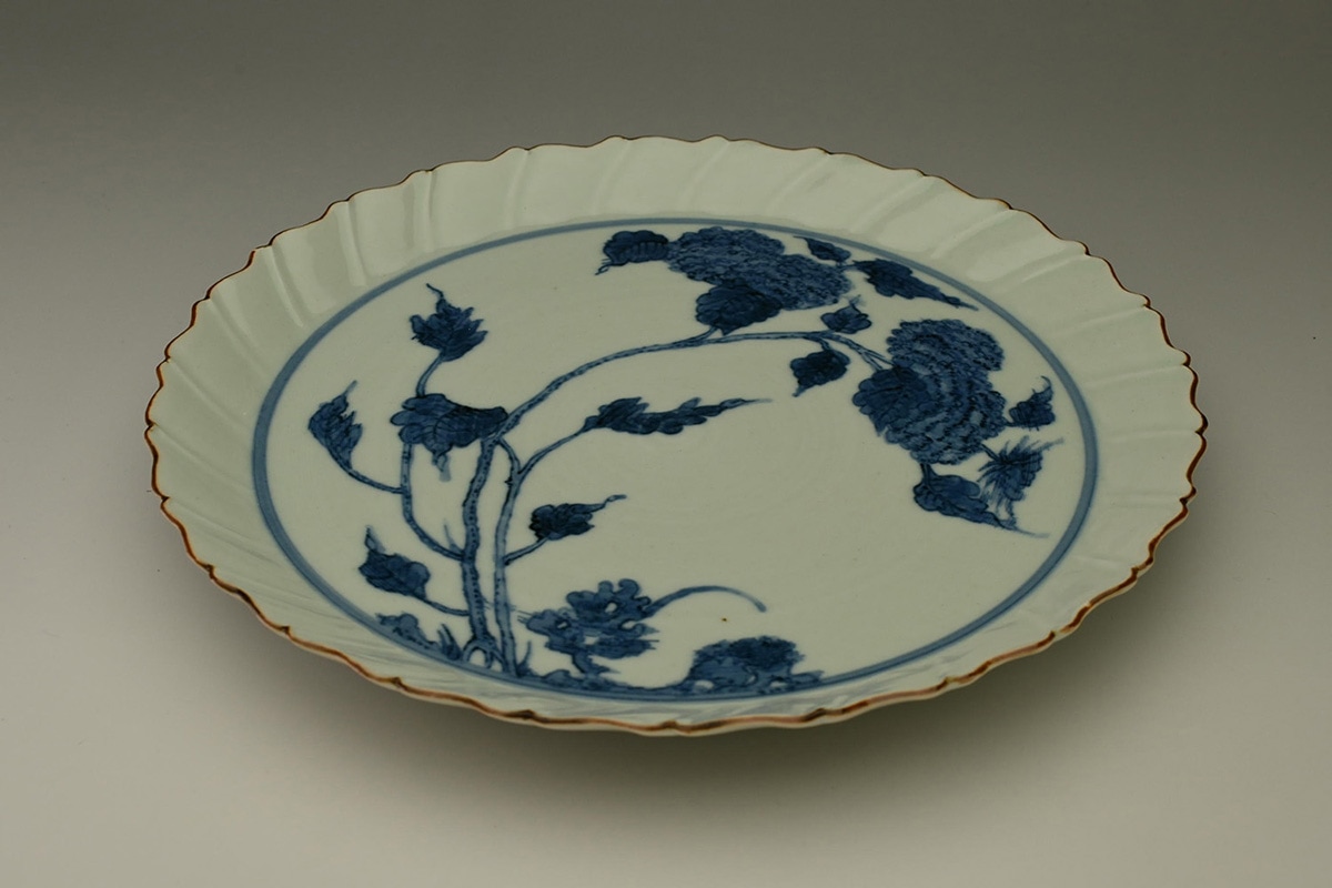 陽刻花鳥文輪花皿